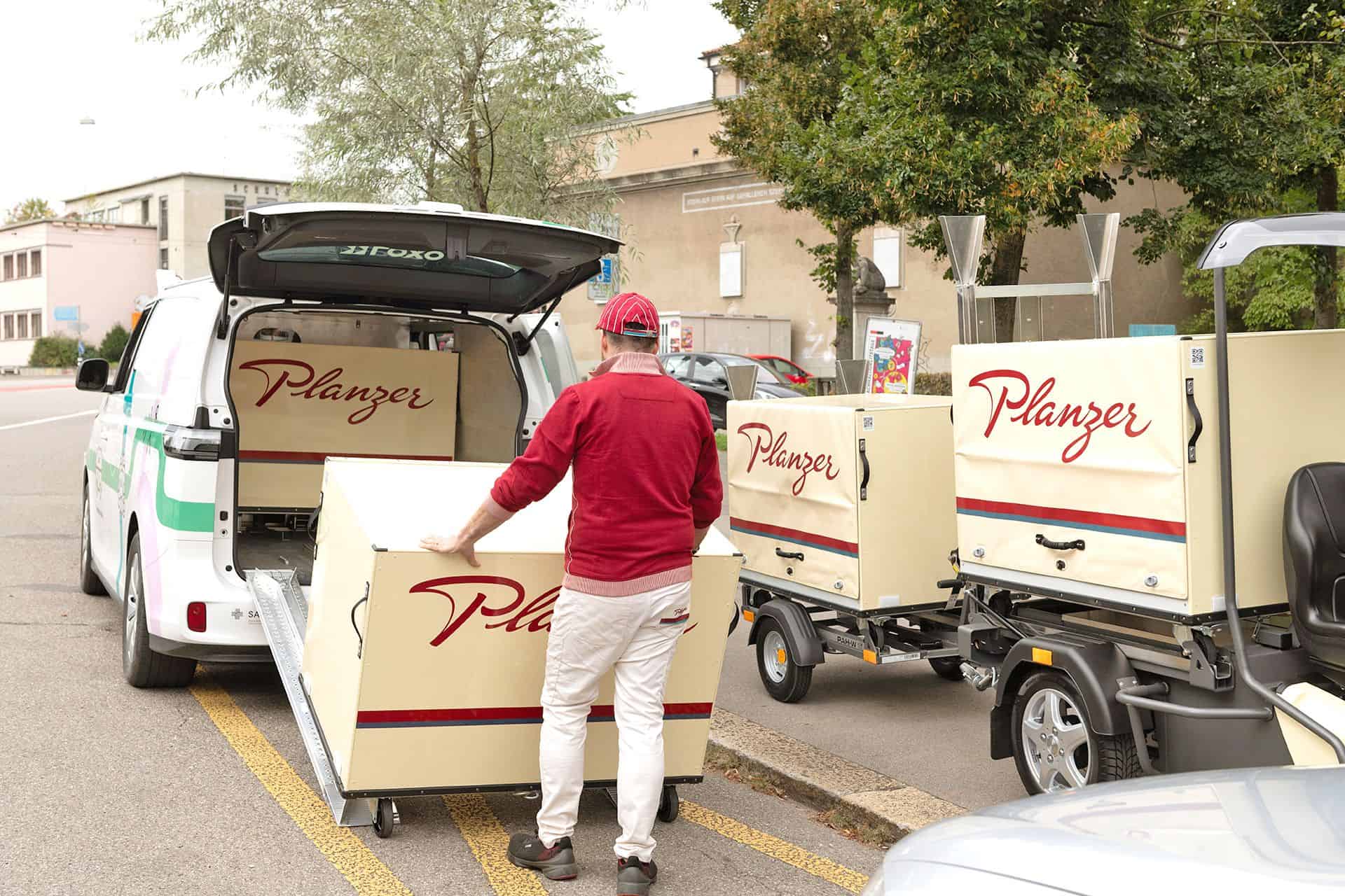 Planzer and LOXO have incorporated their expertise into a Volkswagen ID.BUZZ. This dynamic micro hub supplies the small Kyburz-branded delivery vehicles that Planzer Parcel uses for last-mile deliveries in inner cities. The micro hub has room for two interchangeable box chassis that have been specially developed by Planzer and Kyburz for this application. This autonomous vehicle picks up supplies several times a day from the Planzer railway centre on Murtenstrasse in Bern. This allows ‘Planzer – Dynamic Micro Hub with LOXO’ to maintain the efficiency of sustainable deliveries in the city centre at peak levels.